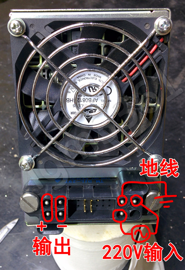 电源正常工作,有电压输出,风扇低速运转。