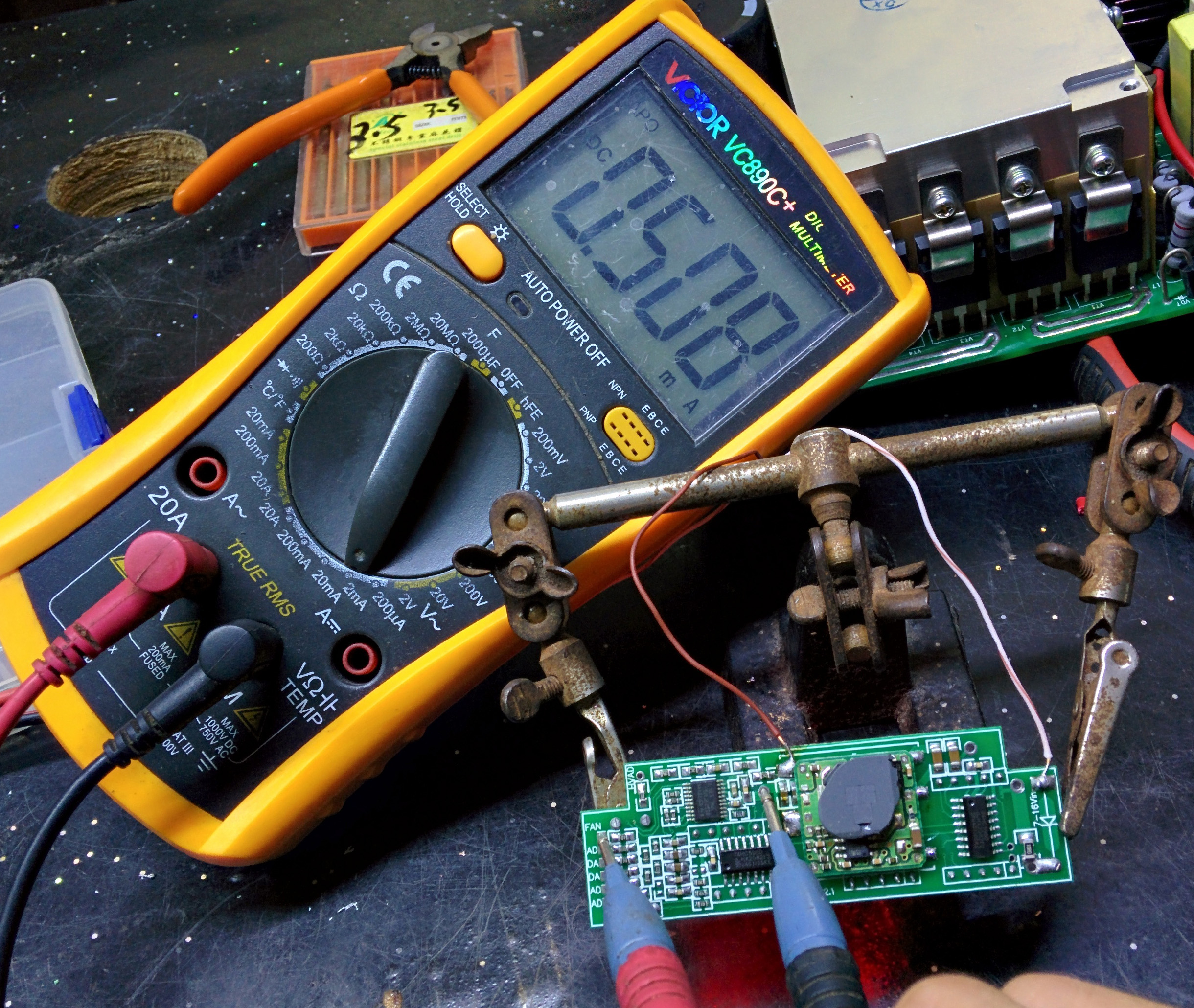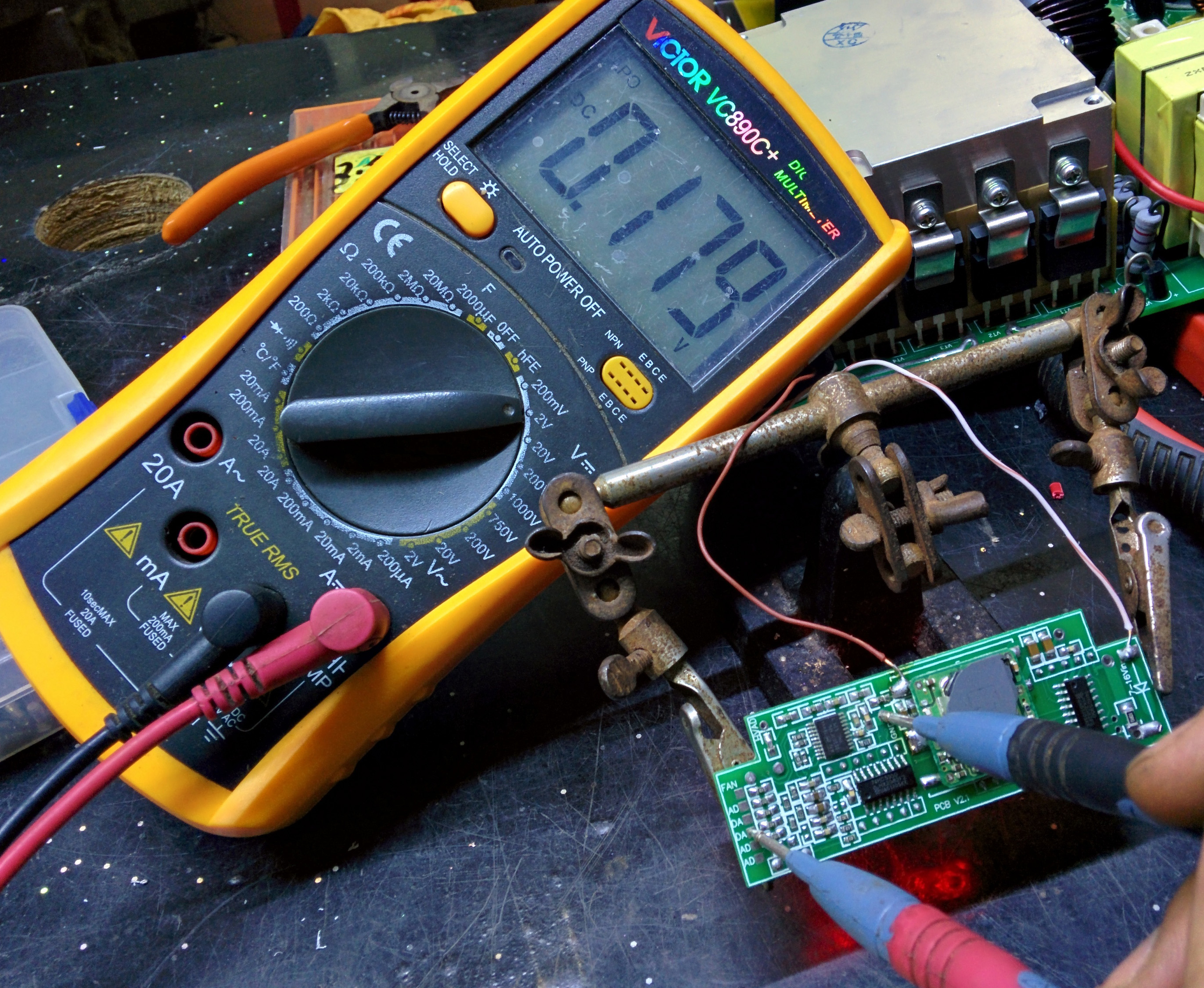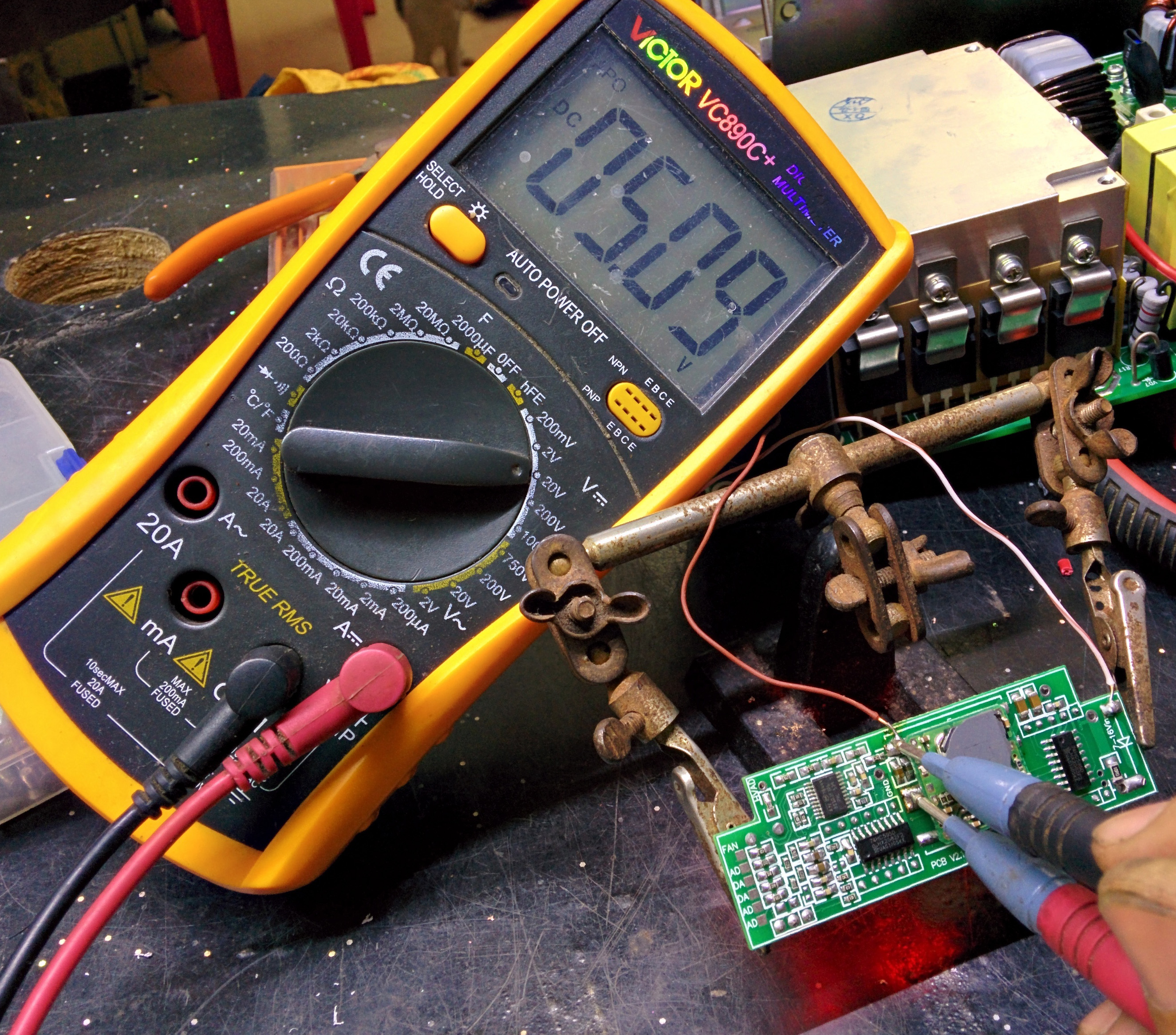 用镊子把单片机5V直接点到【电流AD】,数码管应该显示25.5A,正常范围是25.0-26.0A