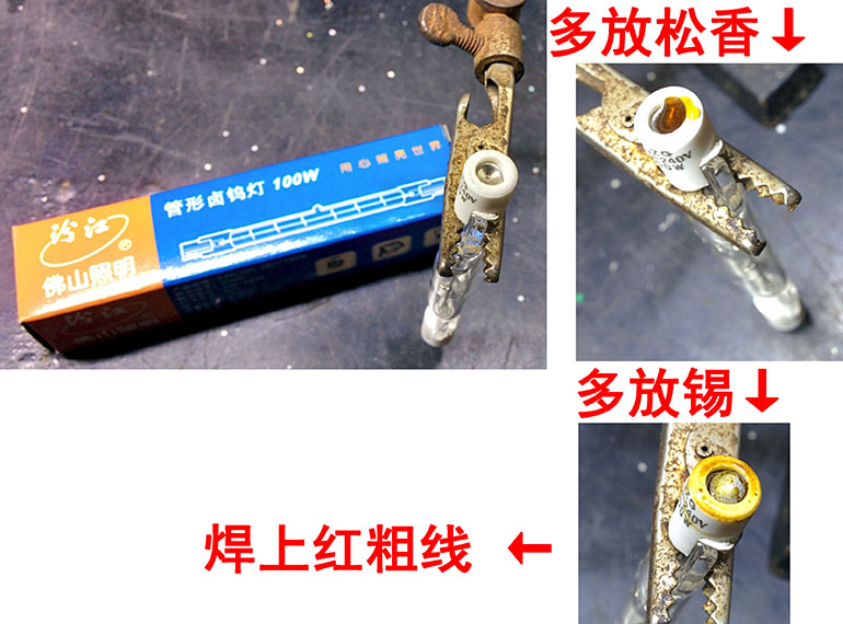 拿出灯管,给灯上锡、焊线。