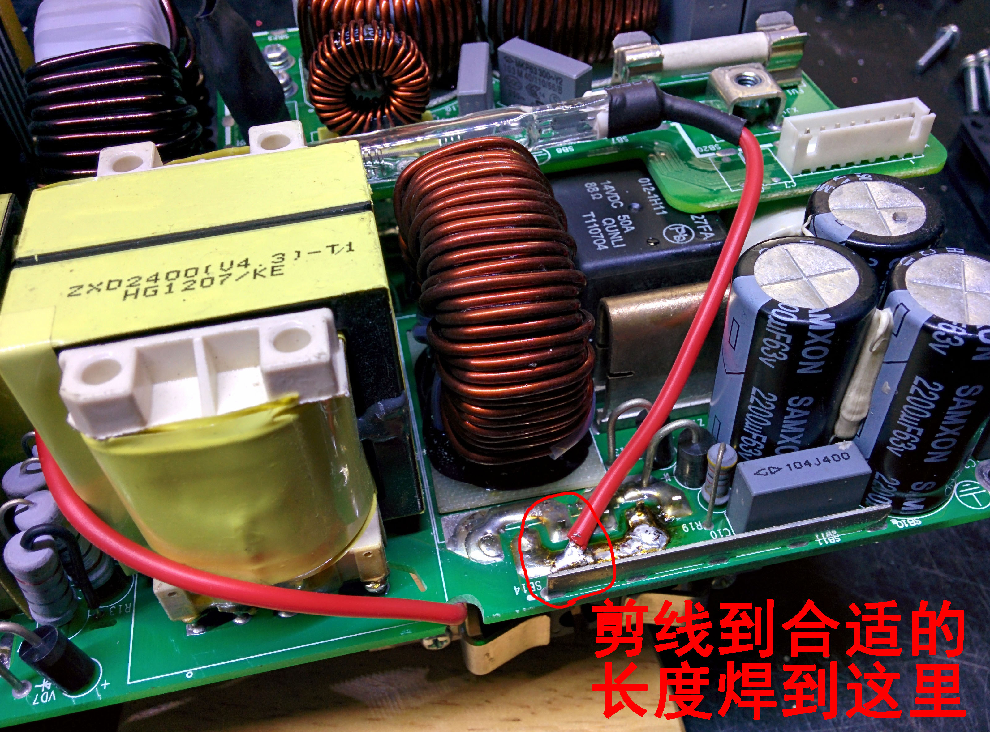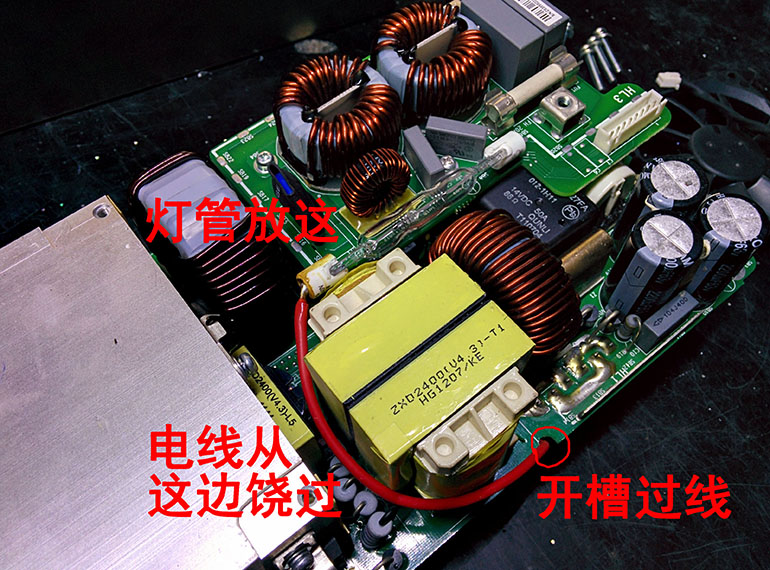 接下来要给电源装上卤钨灯了,这个灯的作用就是充当一个假负载,在电源往下调电压的时候加速大电容放电,快速到达目标电压。