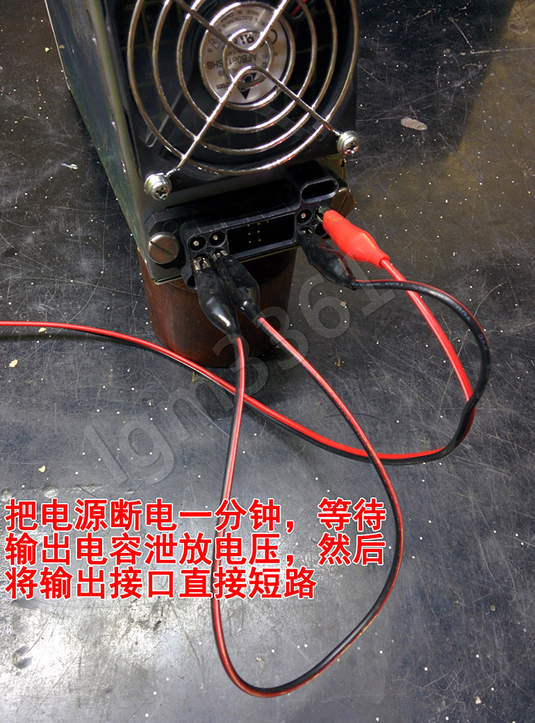 接好短路之后,给电源插电(短路线如果接触不良,线头容易喷火星,声音和放鞭炮差不多)