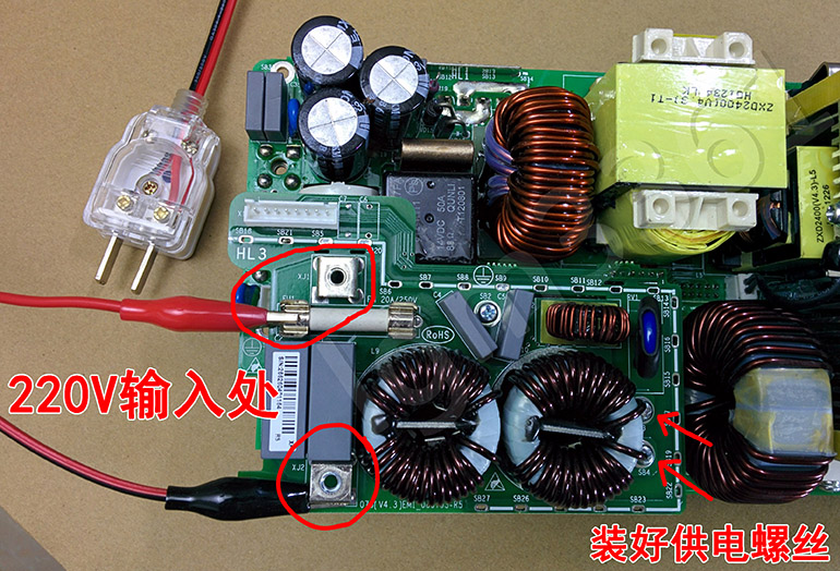 再注意:禁止未插主板的情况下通电。通电后若需拔插主板检修,必须测量确认初级450V大电容的余电等到低于10V后才能拔插主板。