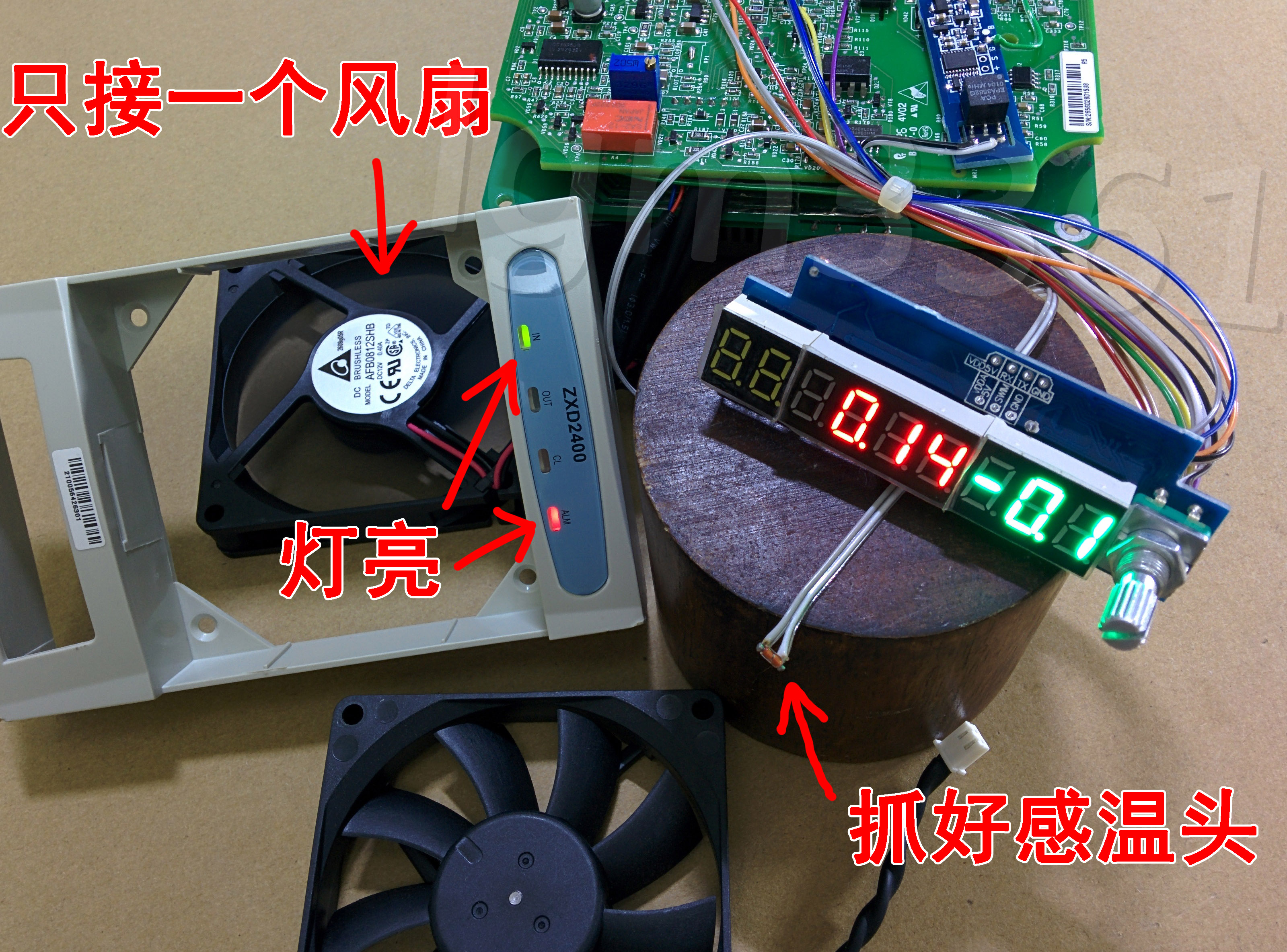 先把感温头拿出来,小心不要让它掉到电路板上