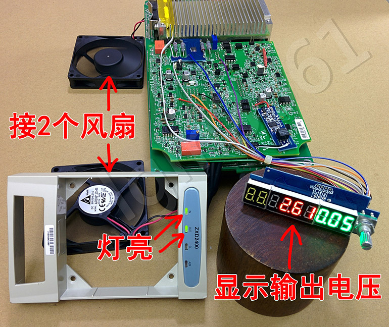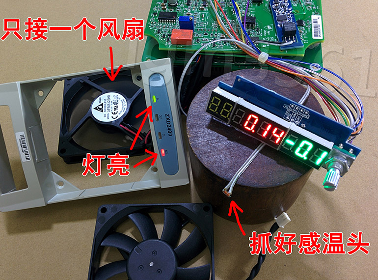 把前后两个风扇都插上,通220V电开机