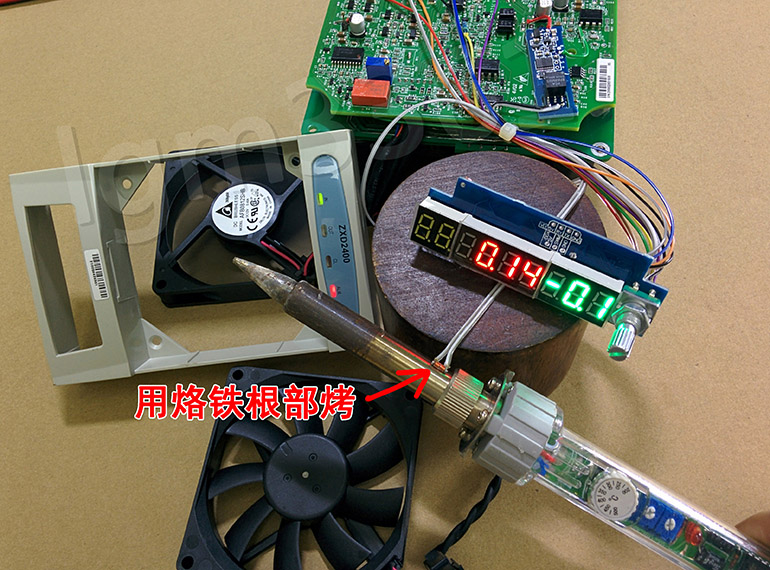用烙铁根部烤感温头,测试风扇调速是否正常