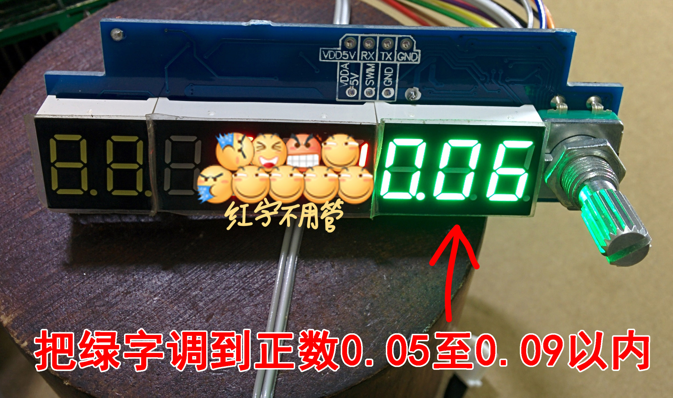 找个合适的小螺丝刀,一边观察绿色电流显示,一边慢慢转它,调到正数0.05至0.09的范围内即可(看清楚别是负数),只要进了范围内就可以松手,不用纠结数值的大小,最终使用效果没区别。