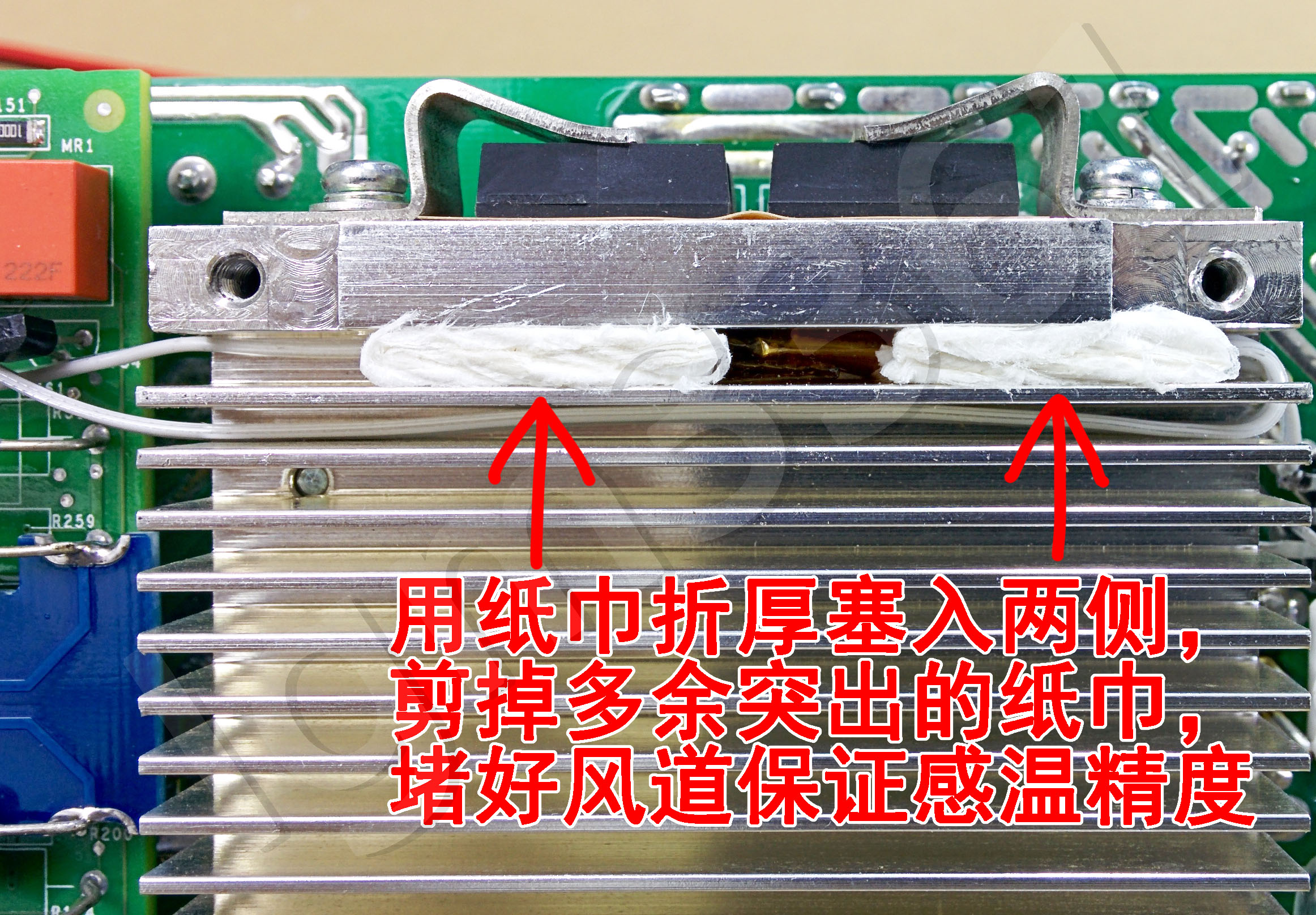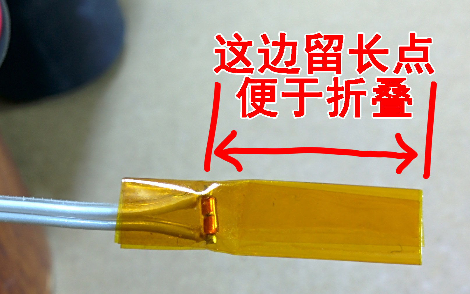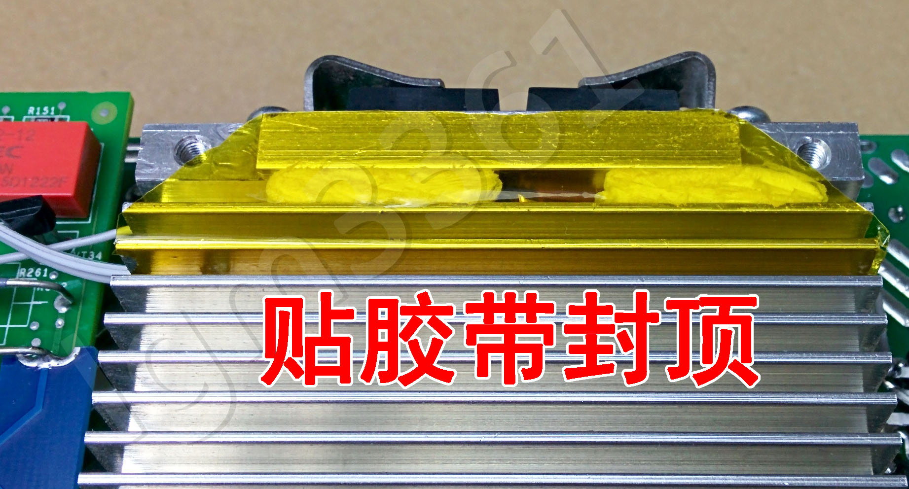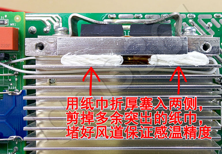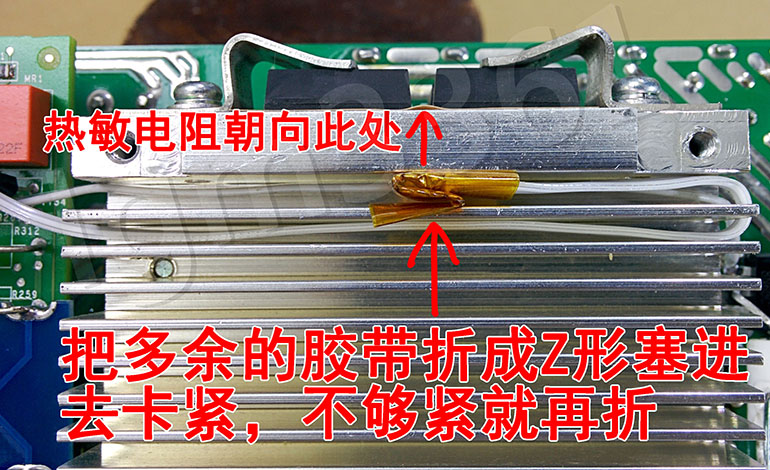 给感温头包上3圈胶带进行绝缘,用普通透明胶带或者两层热缩管都可以,此处最高工作在60度左右