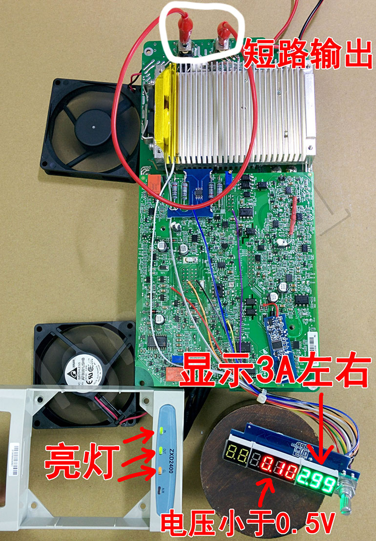 绿字电流显示2.8至3.2A属于正常,限流功能有效,然后可以拿掉短路线